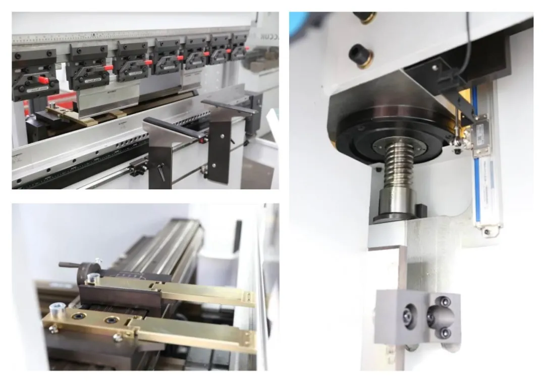 - Máy được trang bị hệ thống chặn sau Premium chất lượng cao theo công nghệ được Accurpress cấp bằng sáng chế, thiết kế dạng mô-đun, có thể mở rộng từ trục X đơn lên hệ thống chặn sau đa trục.