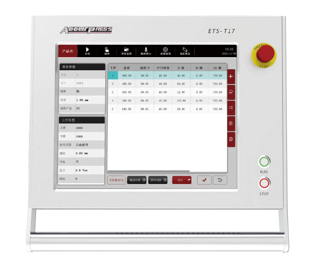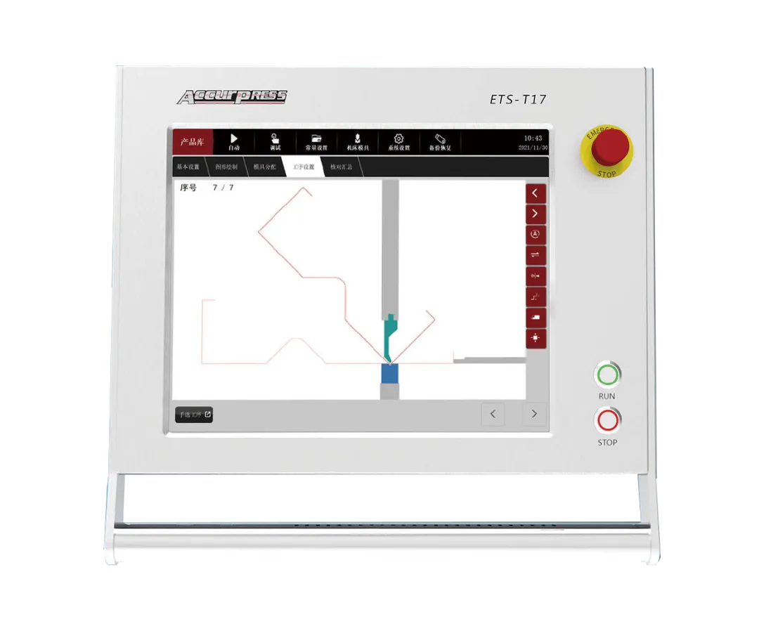 • Hệ thống CNC Accurpress ETS-T17 thế hệ mới được phát triển trên nền hệ điều hành Linux, sử dụng giao diện cảm ứng đồ họa đa cửa sổ, cung cấp phương thức lập trình CNC đơn giản nhất.
