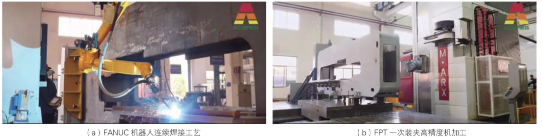 Khung kín bản rộng, kết cấu nặng, gia công bằng trung tâm khoan–phay CNC FPT (độ chính xác ≤0,02 mm), hàn robot FANUC và xử lý ram toàn thân, cho độ cứng, độ ổn định và khả năng chịu lệch tải rất cao.