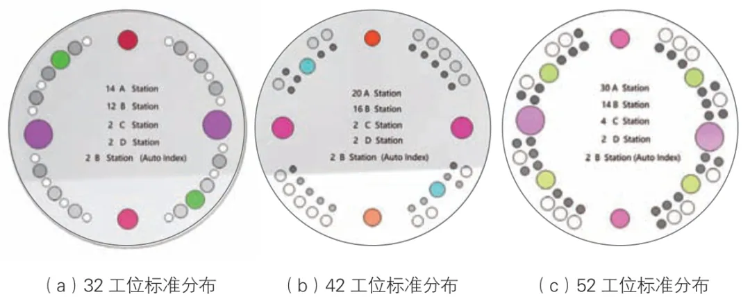 Bố trí mâm linh hoạt: 32, 42 hoặc 52 trạm, đáp ứng nhu cầu tùy biến của khách hàng.