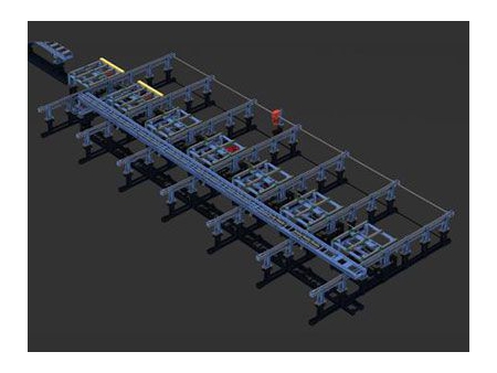 - Dầm hoàn thiện được hạ xuống băng tải ngang để cấp ra ngoài.